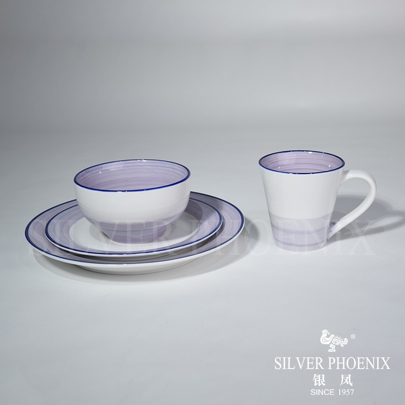 B30105190025A 16 pcs dinnerware painting lines under glaze purple grey color