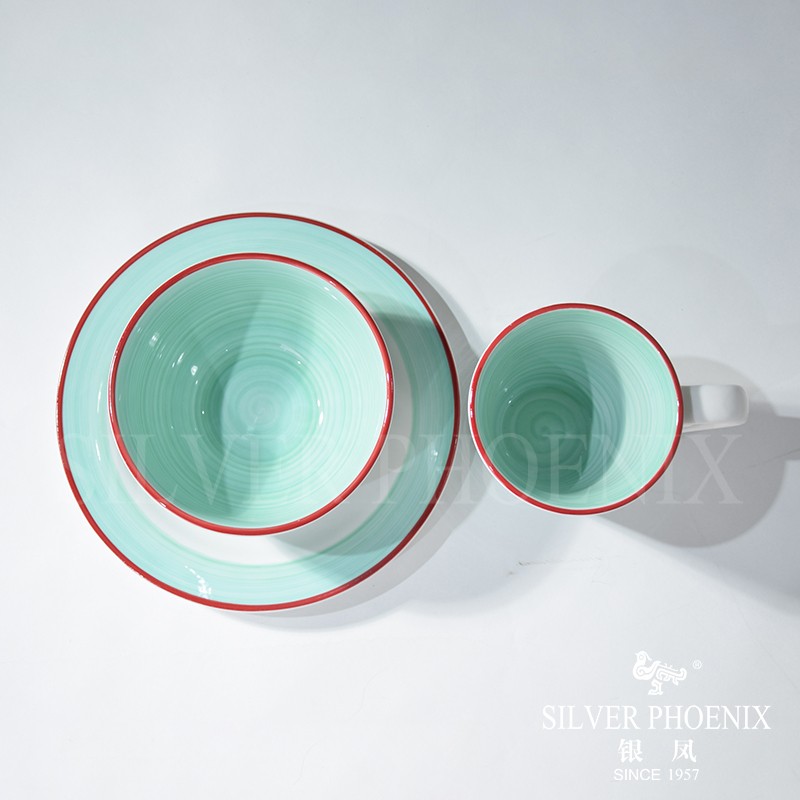 B30105190017A 16 pcs dinnerwarepainting lines under glaze light green color