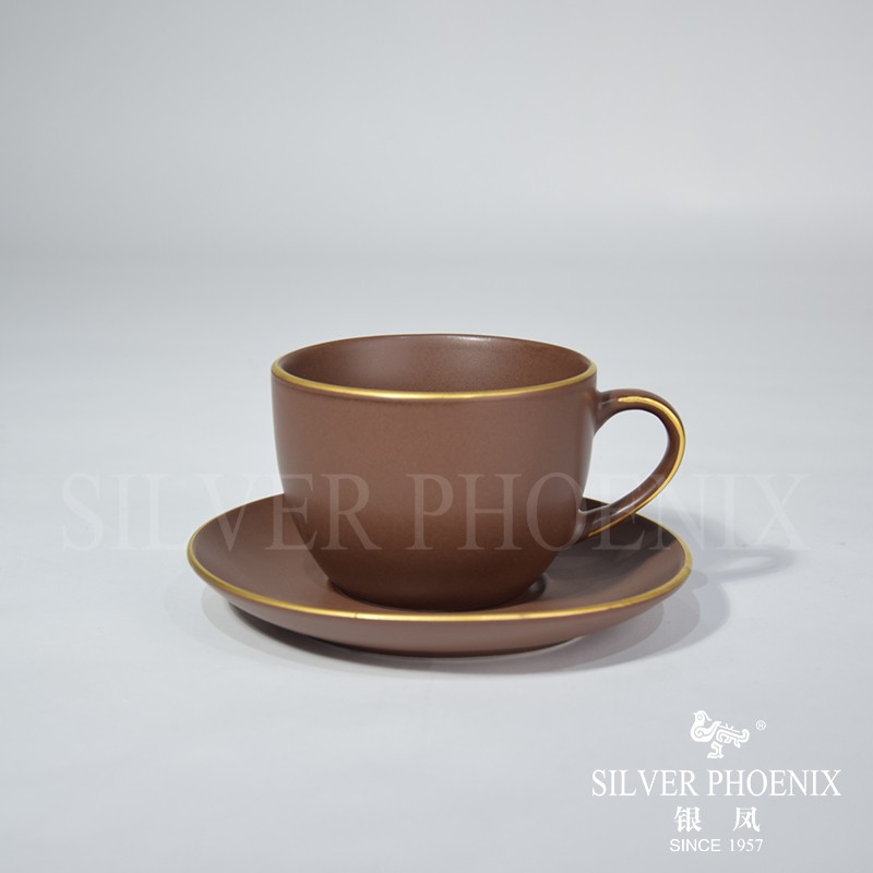 S30302070001 & S30302070002 200cc cup & 15cm saucer matte brown with gold