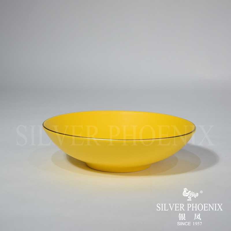 S30302080005 19cm salad bowl matte yellow with gold rim